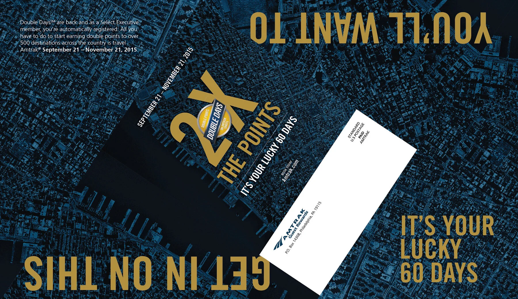 Below you will find a couple of examples of prepared printed pieces I processed for final production. The first example reflects a direct mail piece built with custom folds, Pantone metallic printing along with dynamic sections for mail distribution. The second example displays a Guest Rewards campaign that I completely rebuilt with assets and mechanical files for large format printing and image scaling.